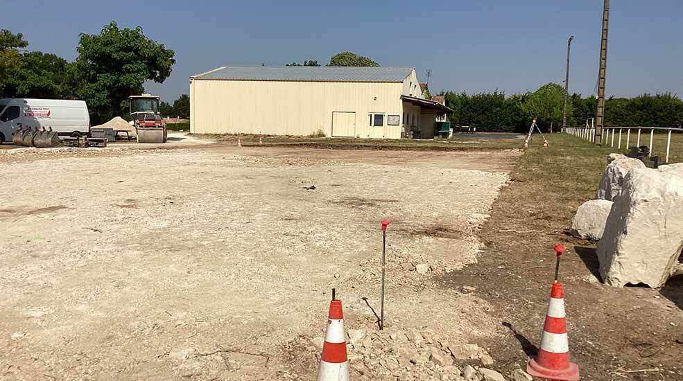 Les équipes BERNARD TPGT transforment des espaces extérieurs pour créer de nouvelles places de stationnement en gazon armé.
